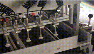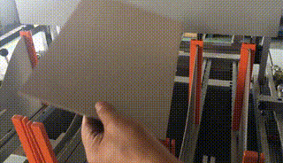 在更換不同厚度紙板或有需調節紙板時,按下按鈕后送紙板機構會吸起紙板運行前部位置停止,根據紙板規格厚度調節紙板推規至合適的位置,再次按下按鈕送紙板機構回到起始位置。 |